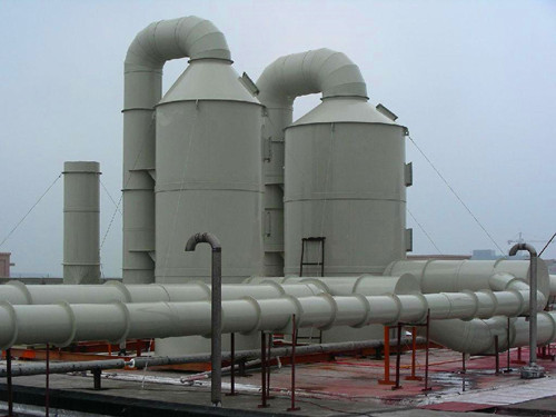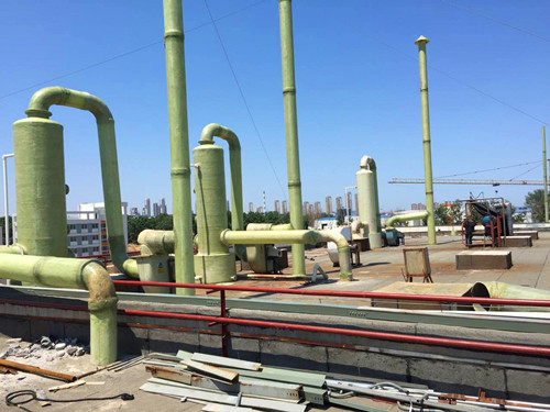 通過洗滌的方式除去氣體中的雜質,然后通過風機將達標的氣體排出是廢氣處理的基本流程。本公司生產的玻璃鋼洗滌塔與風機均具備非常優秀的防腐蝕性能,在工業生產中使用較多。下面展示一些玻璃鋼洗滌塔的安裝示例圖。