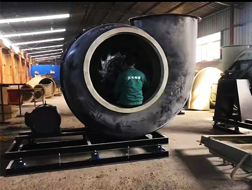 當玻璃鋼離心風機的型號超過10C時,因為風機的葉輪、外殼等配件的尺寸都偏大,所以需要將玻璃鋼材質的架子更換為碳鋼架子。最近有個江蘇的客戶從我司采購了一臺14C的風機,下面是該風機的安裝與發貨圖。